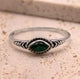 Minimalist Emerald Stone Ring - Boho Silver Split Band Ring - Dainty Oval Gemstone Jewellery