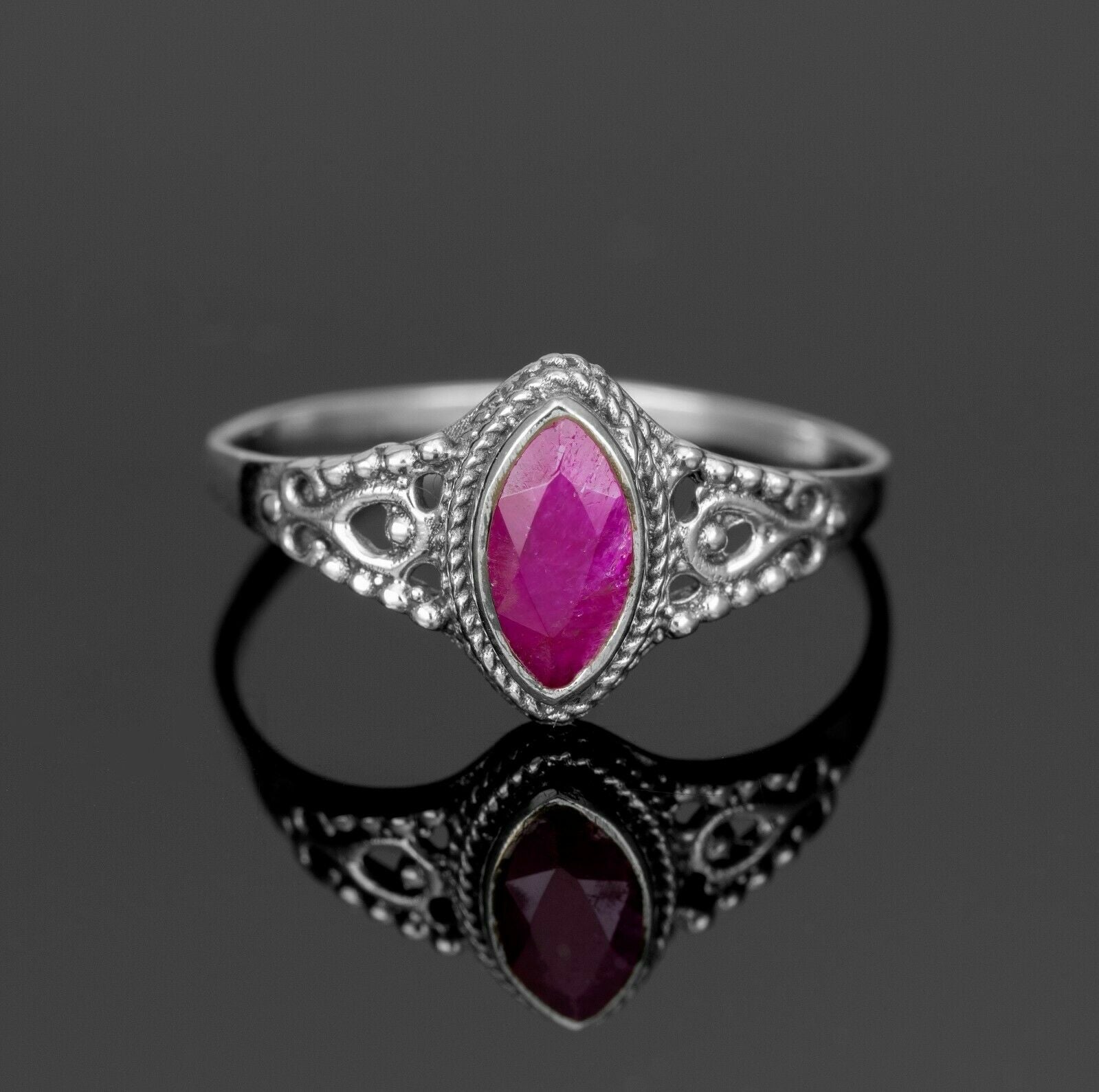 Marquise 925 Sterling Silver Labradorite Ruby Gemstone Ladies Ring Jewellery